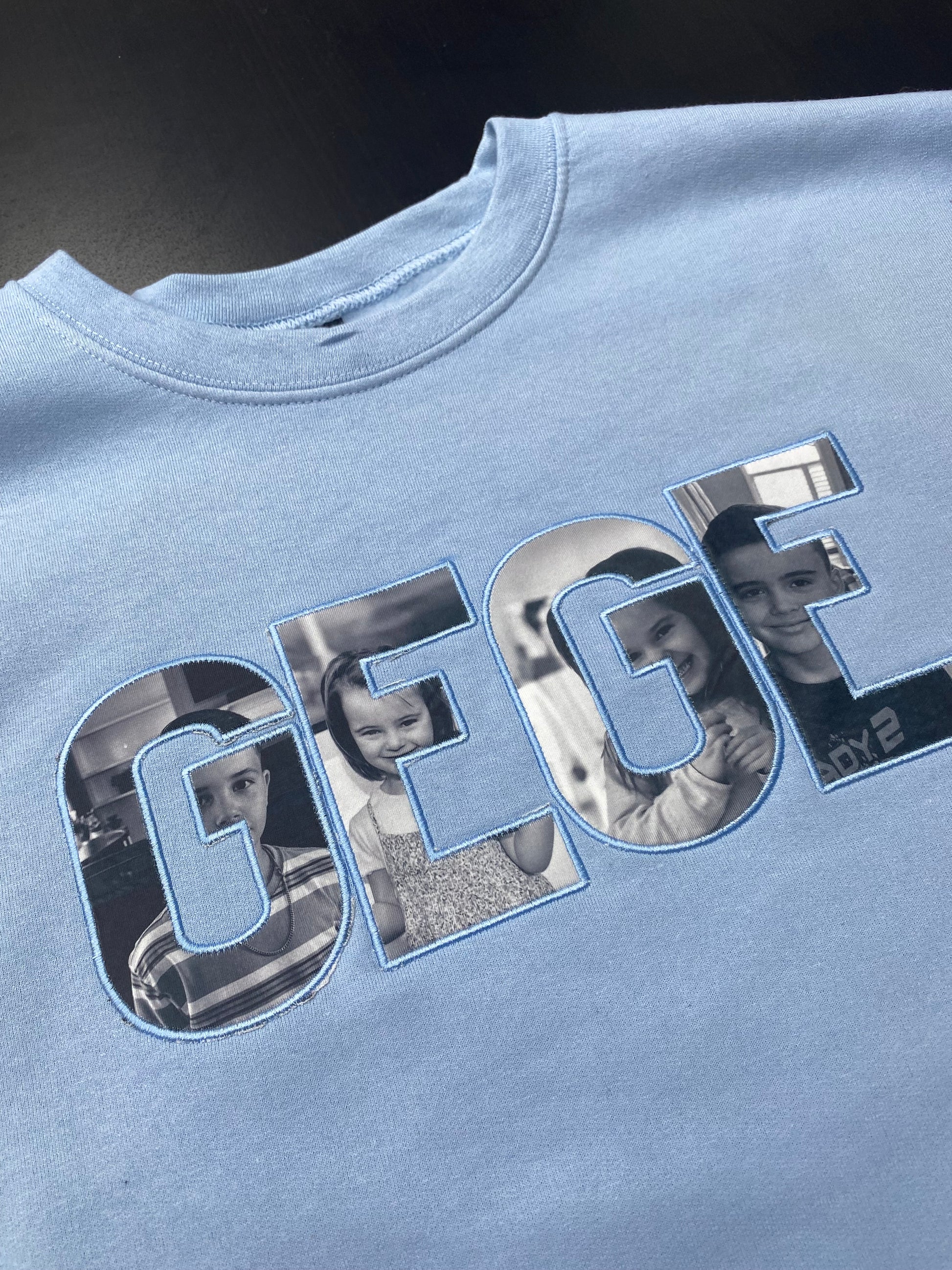 Celebrate meaningful connections with a custom "GEGE" sweatshirt tailored to your vision. This premium garment combines comfort with heartfelt personalization—pick from 20+ curated colors, then add personalized custom photos for a truly one-of-a-kind piece. Our advanced process of sublimation and embroidery methods combined together to deliver professional results that stand the test of time. Engineered for durability, the sweatshirt features a soft 50/50 cotton-polyester blend, reinforced stitching, quality yarn, and finished ribbing at every seam. The relaxed unisex cut flatters any body type, making it perfect for gifting or keeping for yourself. Production doesn't start until the order is placed. Allow 1-2 weeks for final product. Starting at $50, it's an accessible way to wear your story.